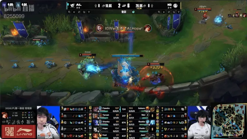 6分钟:双方河道混战,IG更胜一筹打出二换四